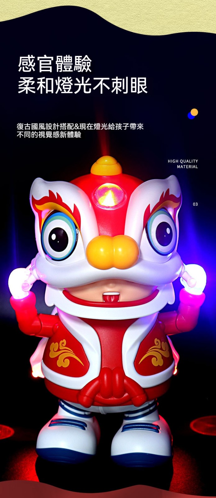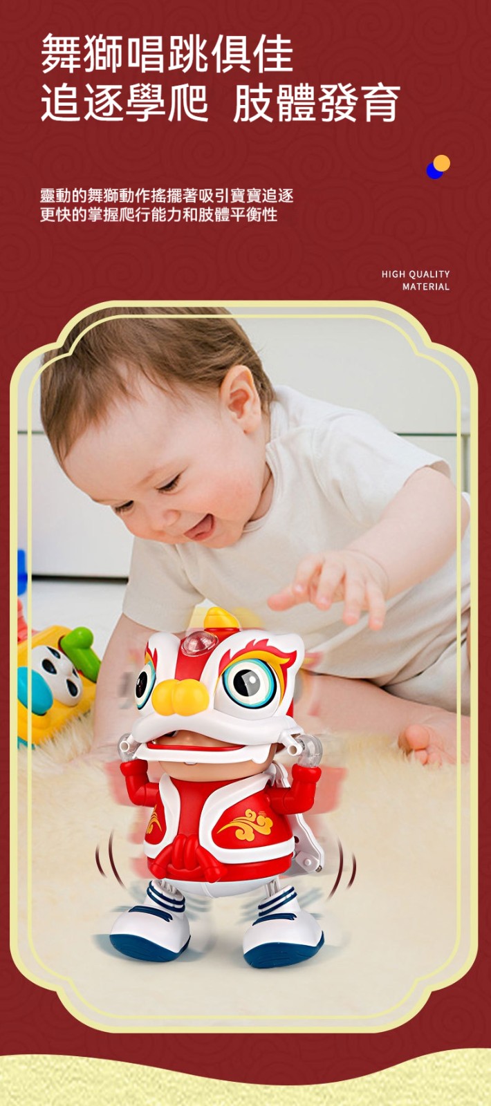 寶寶的目光被抓住了!會唱歌跳舞的發光小舞獅,陪伴爬行探索新世界!