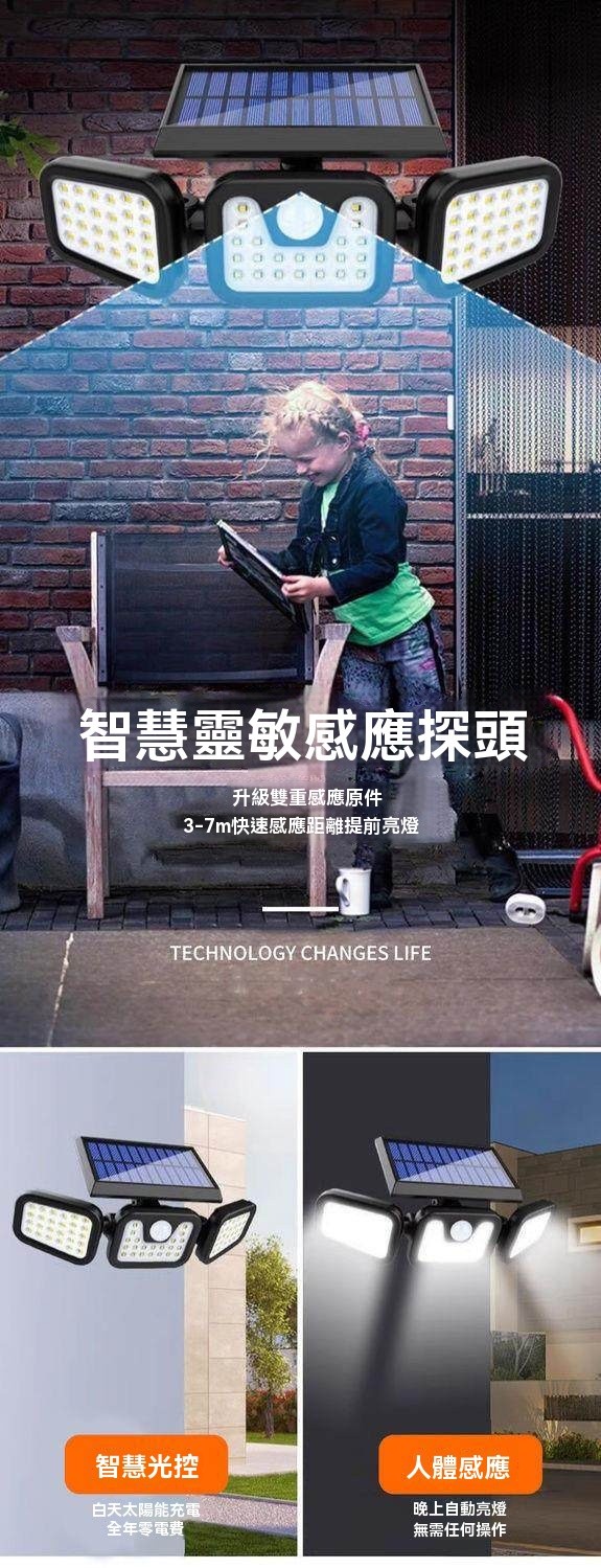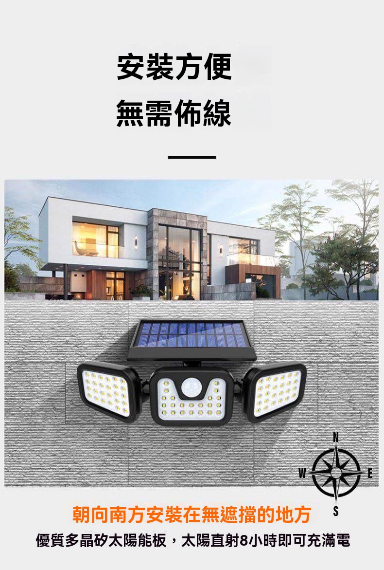 太陽能感應燈 戶外防水照明 人體感應自動亮 大泛光免佈線 庭院走廊燈 零電費